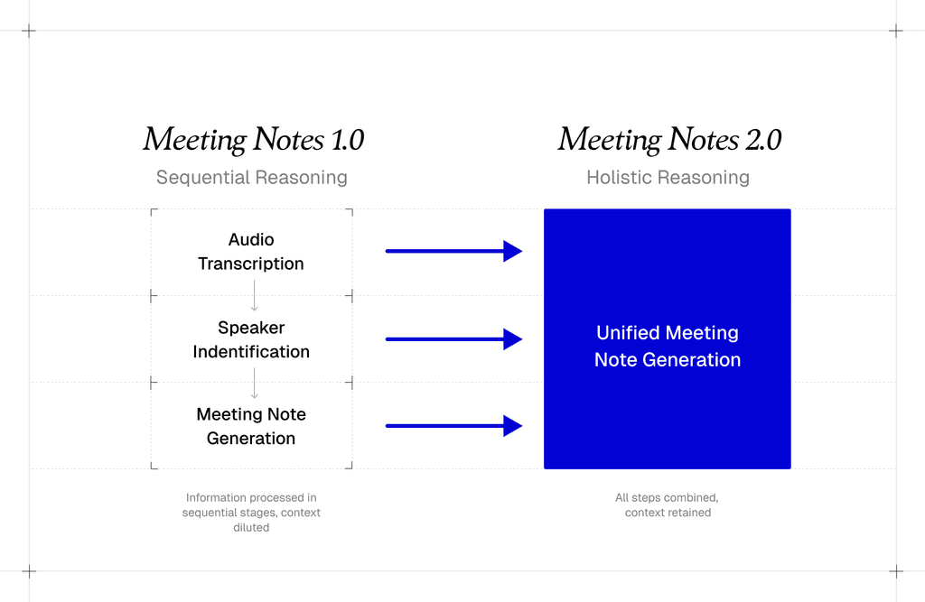To test the new system, we ran a large-scale beta across hundreds of live meetings, comparing Meeting Notes 2.0 against the first-generation model.
